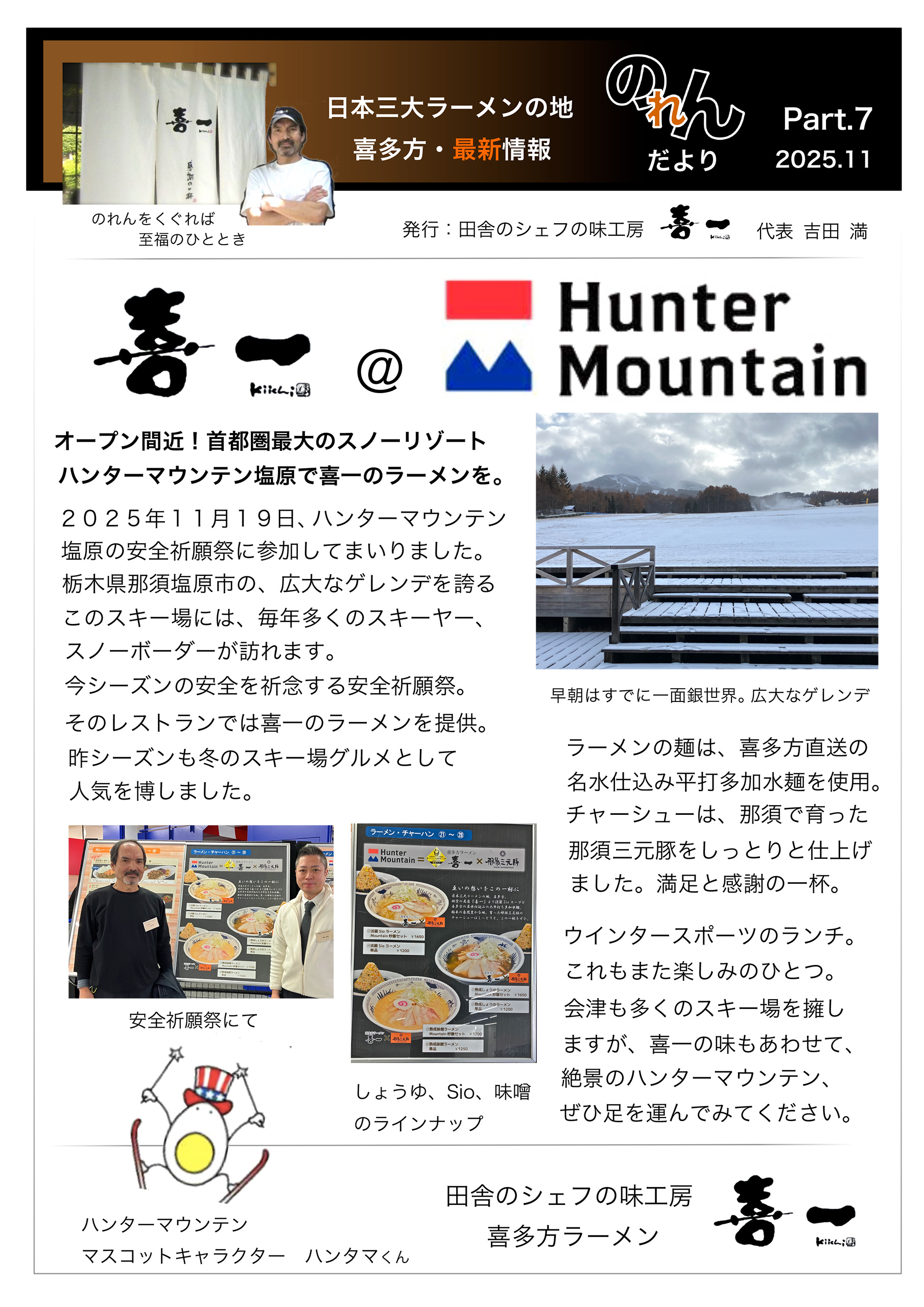 今シーズンの安全を祈念する安全祈願祭。そのレストランでは喜一のラーメンを提供。昨シーズンも冬のスキー場グルメとして人気を博しました。