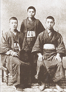 左から野口英世、吉田喜一郎、秋山義次。秋山は県会議員を経て千里村(現猪苗代町)の村長となる。